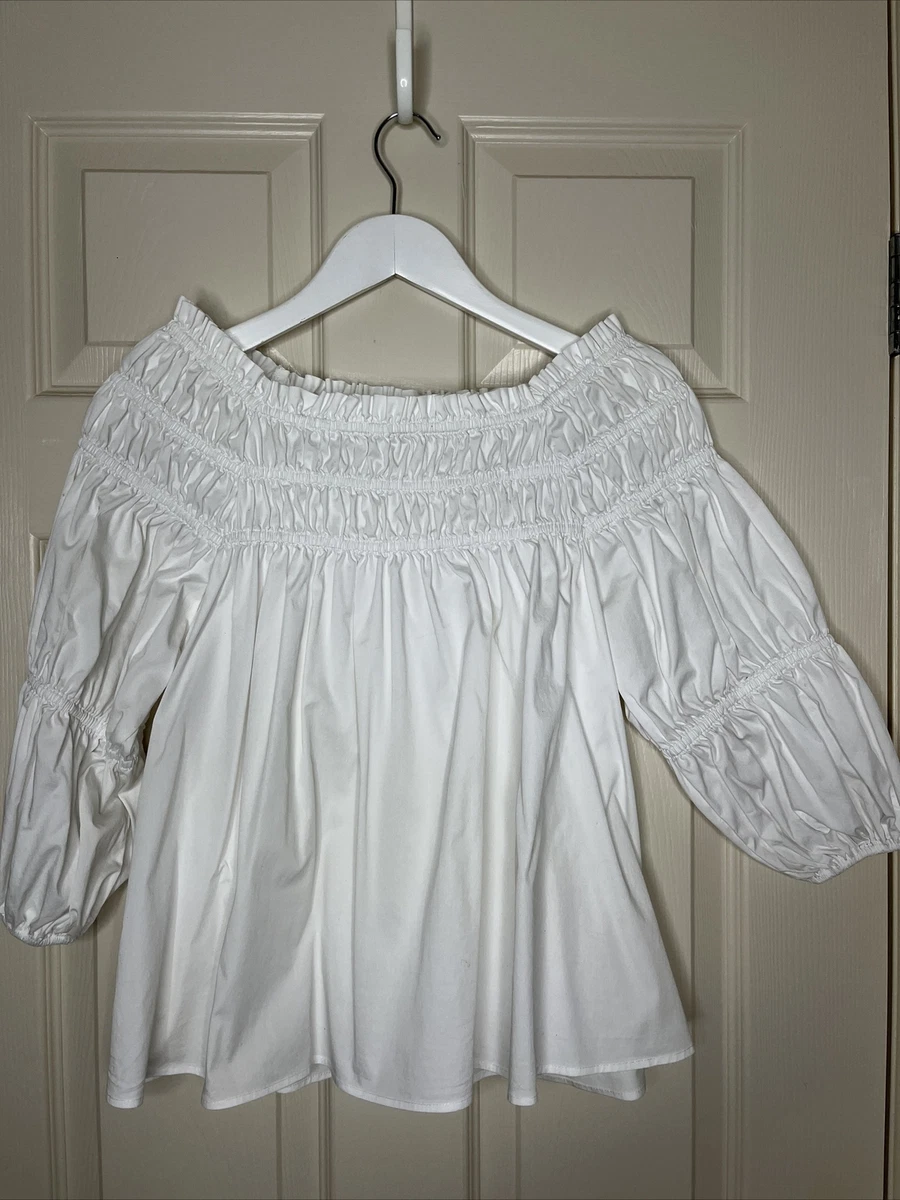 Seed Heritage White Gathered Off The Shoulder Cotton Top Size 8 Nwot Ebay